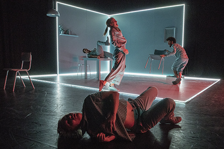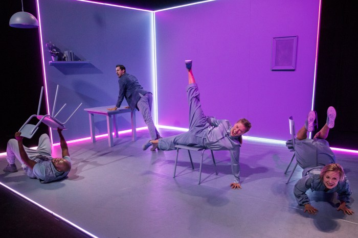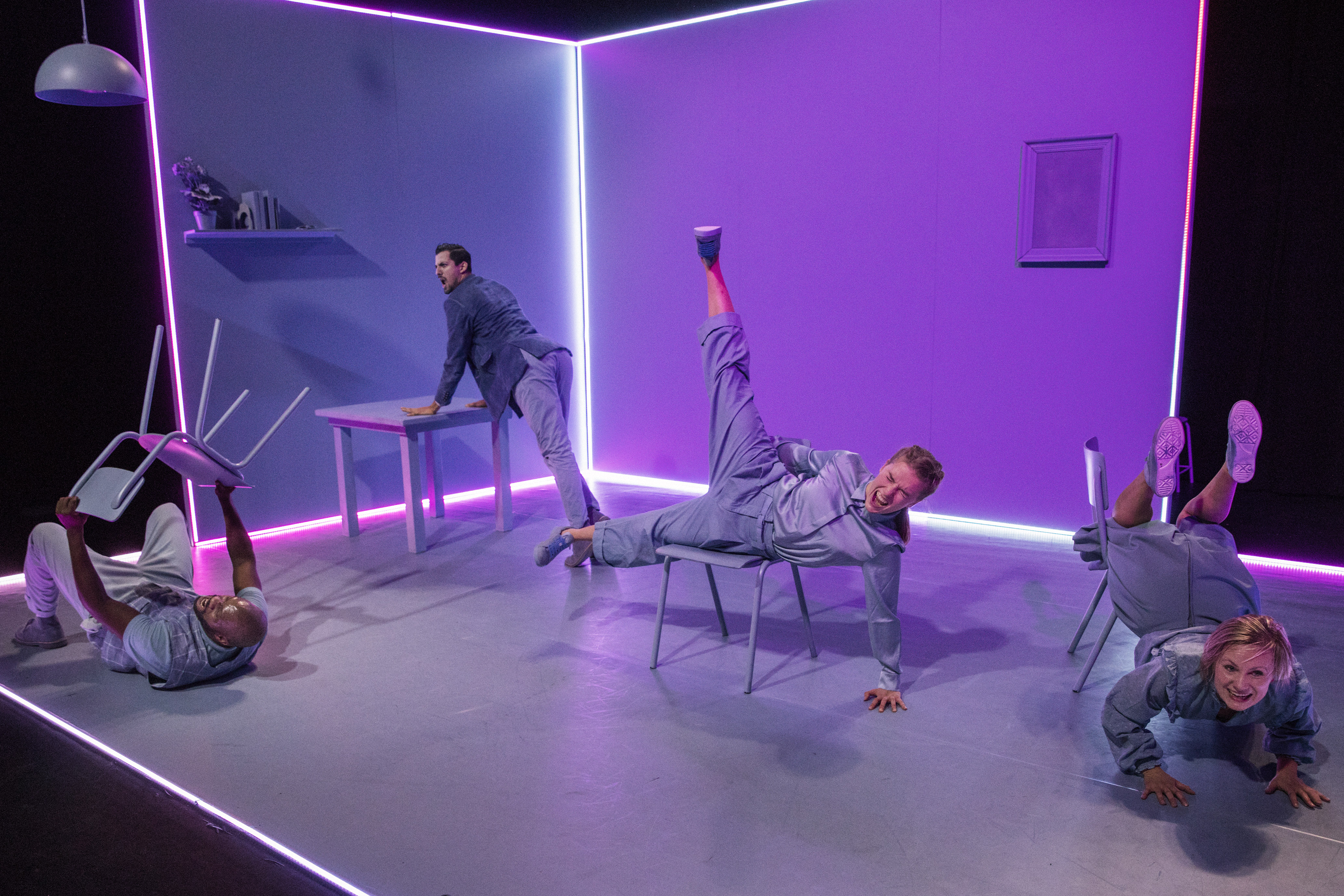 With a mix of dance, theatre and slapstick the four performers and one musician fall in high tempo from one failure to the next. Typical characteristics of failure are transformed into movement: comical or even desperately painful. Mistakes are celebrated as the failures become bigger, better or even virtuosic.